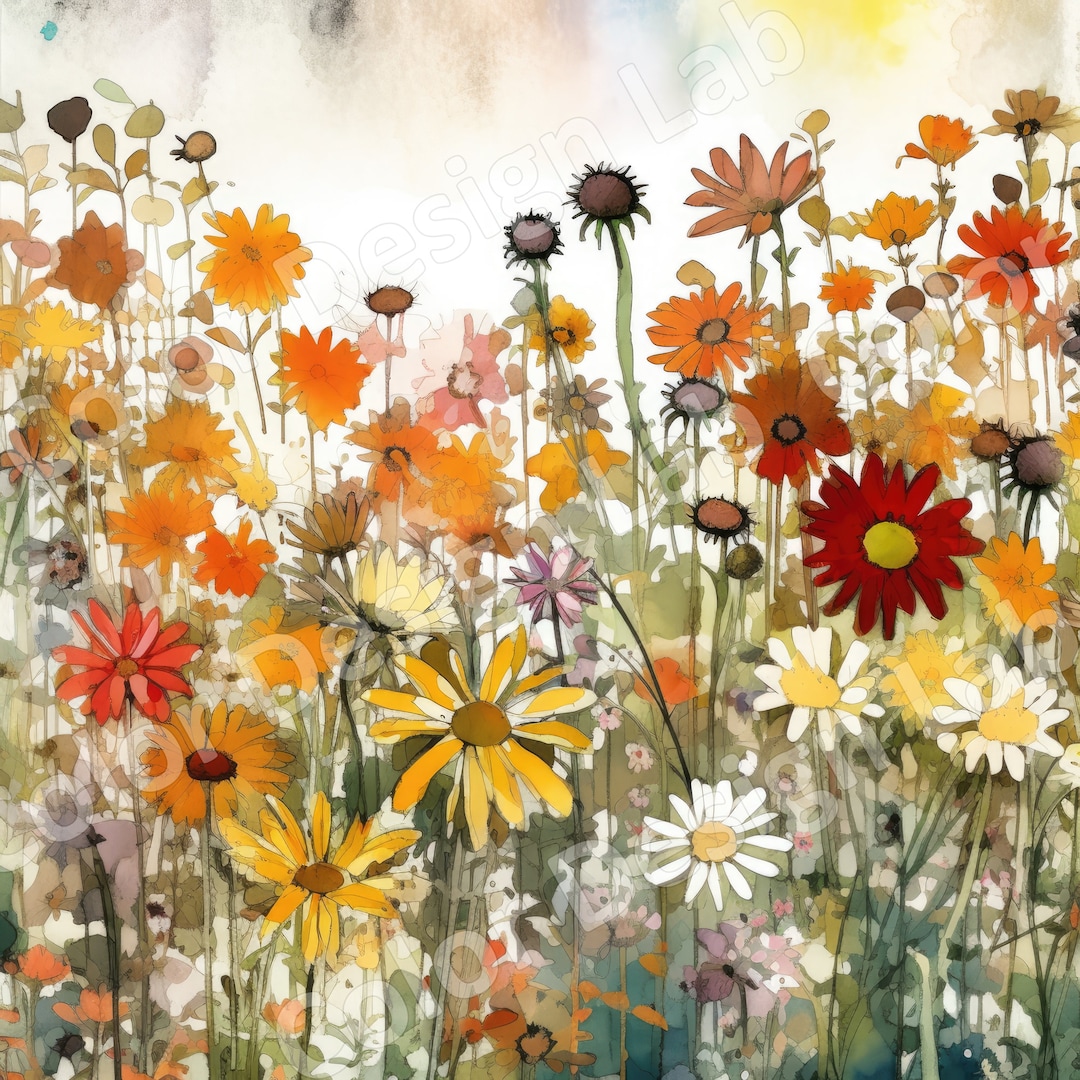 Sun-Kissed Flower Field watercolor clipart, printable watercolor art, instant digital download, flowers clipart, wall art, printable flower art. Experience the beauty of a sun-kissed flower field with our Sun-Kissed Flower Field Clipart set, featuring 8 high-quality, high-resolution JPG images. These vibrant, digitally downloadable flower field images are perfect for card making, invitations, digital planners, wall art, and various crafts. Add a touch of sunny, summertime sweetness to your designs with this charming collection of sun-kissed flower fields clipart.